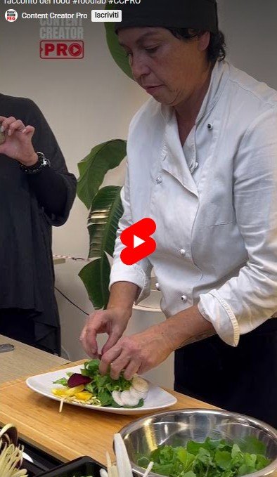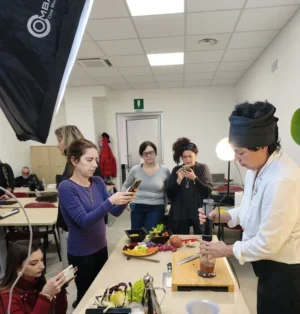 Durante il laboratorio, la chef Catia Verna ha realizzato dal vivo una Insalata d’Autunno, mentre i creator — organizzati in gruppi di lavoro — hanno curato le riprese e il racconto video, ognuno secondo il proprio linguaggio visivo.